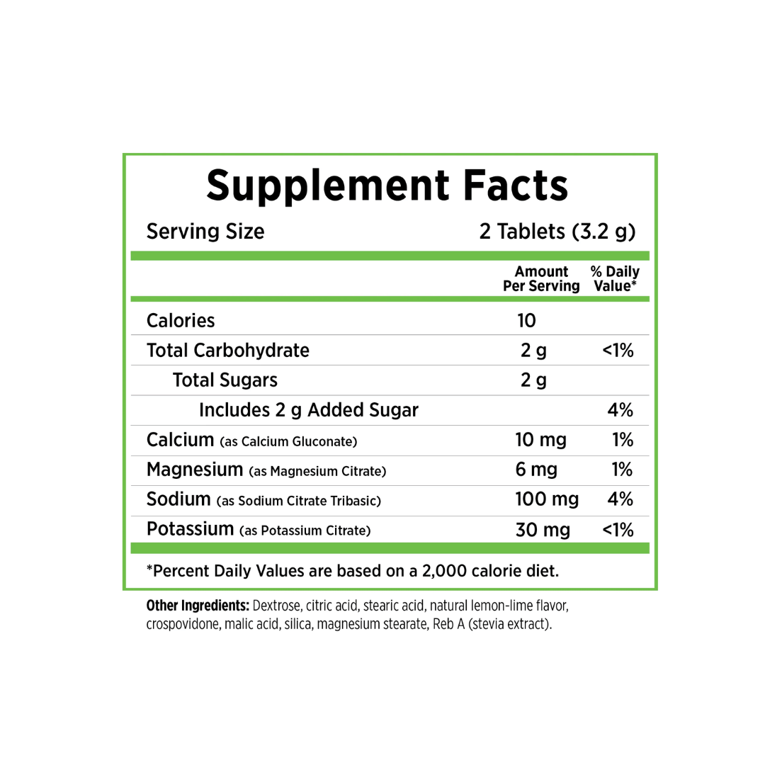 Cada sachet contiene 10 pastillas de sal masticables.